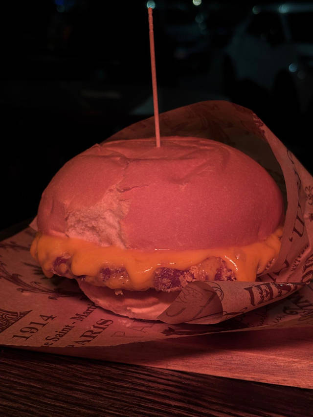 - (Hamburger di bovino adulto 150g, doppio cheddar, porchetta, cipolla croccante, maionese, salsa BBQ)