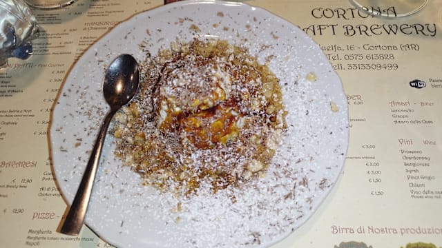 10/10Went here as a recommendation by a friend. Our server Michelle (Micky - pronounced Mee-key) was so very kind and she knew English so well, she even managed some kind sarcasm. “Oh I see it was no good!?” (As she looked at our empty plates). The food was solid and the prices good for Tuscany, especially Cortona. Try the Ice Cream with Beer sauce for dessert! They brew their own beer, which we didn’t try but might be interesting to those who aren’t wine drinkers.
