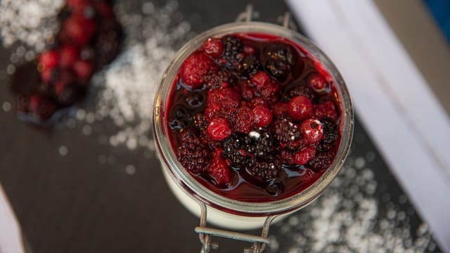 Crema cotta a base di panna, tuorli,zucchero e vaniglia con crosticinadi zucchero di canna caramellata.