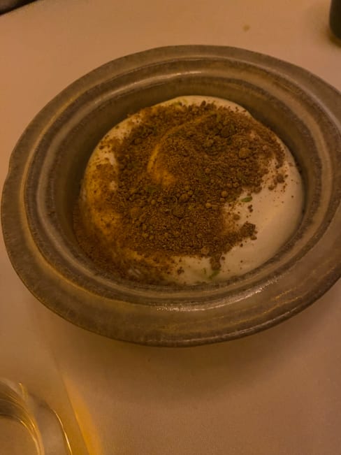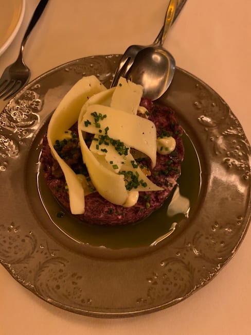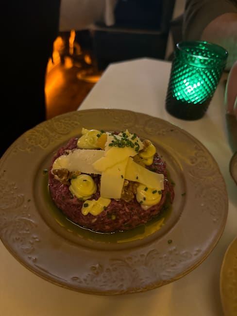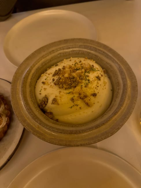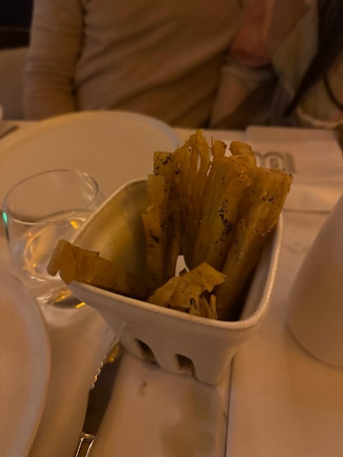 4/10Waiter was inexperienced and said "ok" every other word. At one point I asked him what was inside the ravioli and he only told me what was outside of the ravioli. The food was a set course for Valentine's Day and we didn't finish any of the courses... the ambience is super maximalist with too many ideas similar to the food, ideas that haven't been refined or thought thoroughly to see if they actually coalesce.
