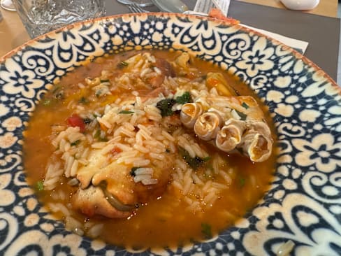 9.5/10Spectacular meal! My husband got the steak of the day which came with fries and a salad. He pushed away the salad and ate every last bite of the steak and fries and said it was incredibly delicious. Then reluctantly went to the salad and said ‘wow, even the salad is exceptional!’. It had red beet carpaccio and pomegranate seeds. Looked lovely. He rarely touches salads but finished this one : ) I had the rice with seafood for two which was enough for three. Wow! Just wow! The fresh herbs and light broth with large pieces of crab, shrimp and mussels made it so special. Just don’t wear a white blouse as the broth can splash a bit when cutting into the crab claws. Highly recommend! Would definitely dine there again. Our server, Antonio, was very kind and helpful.