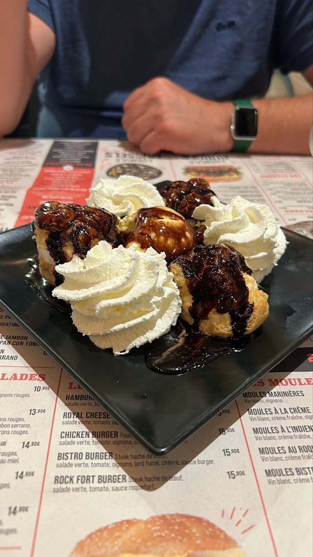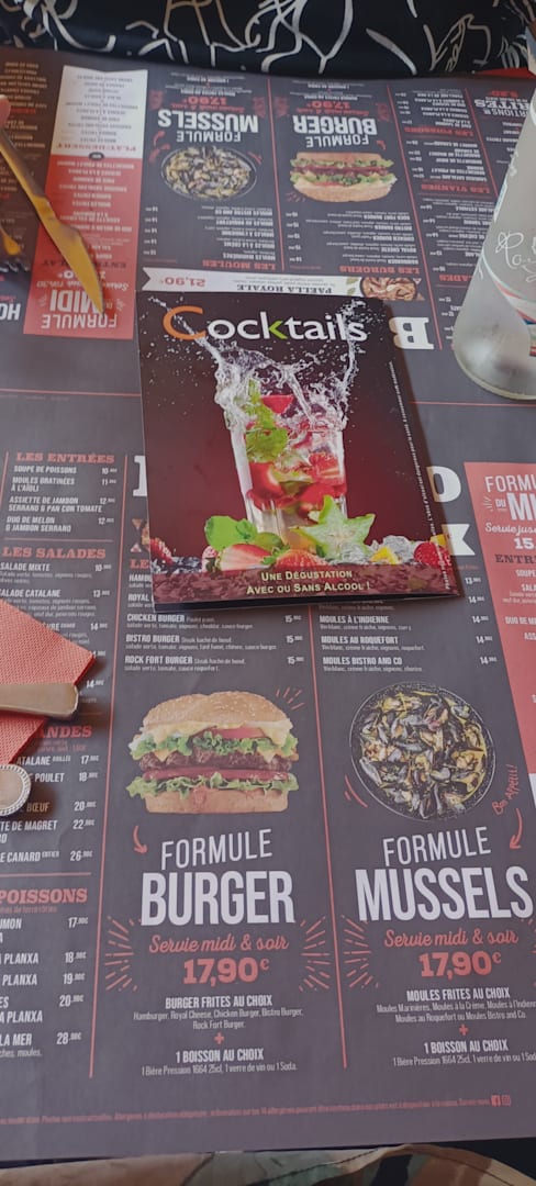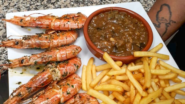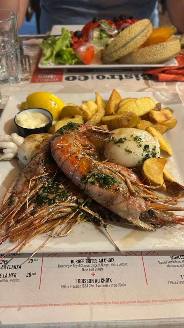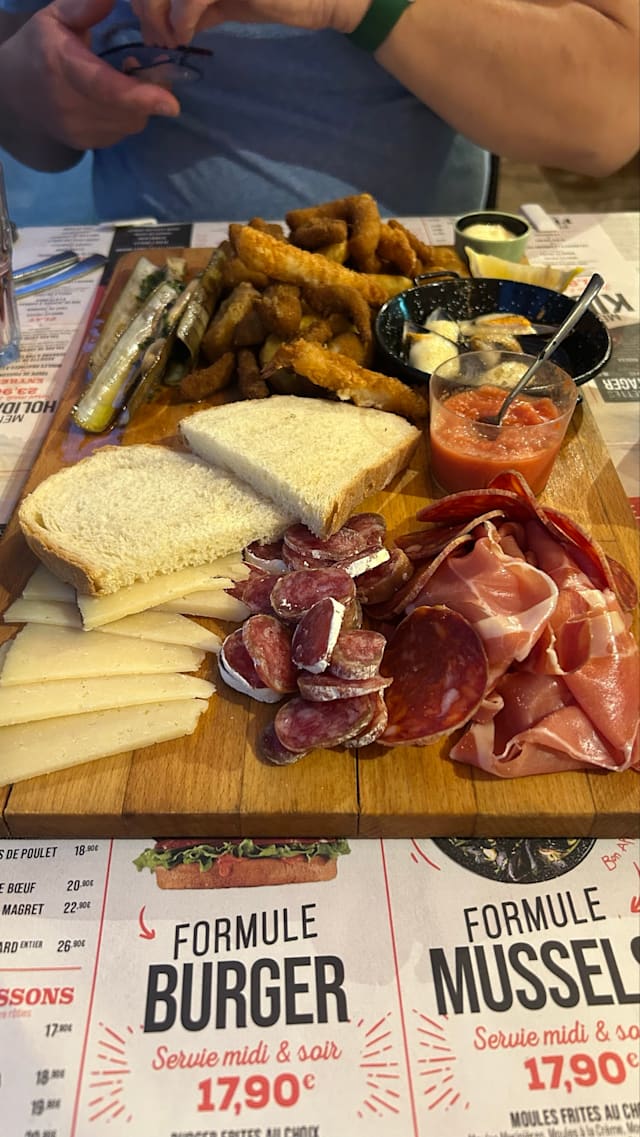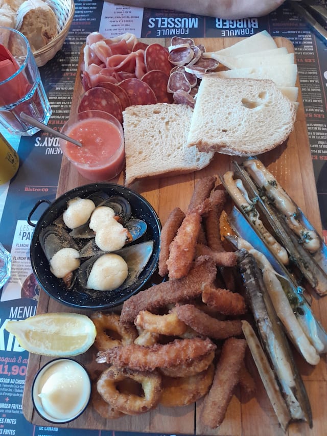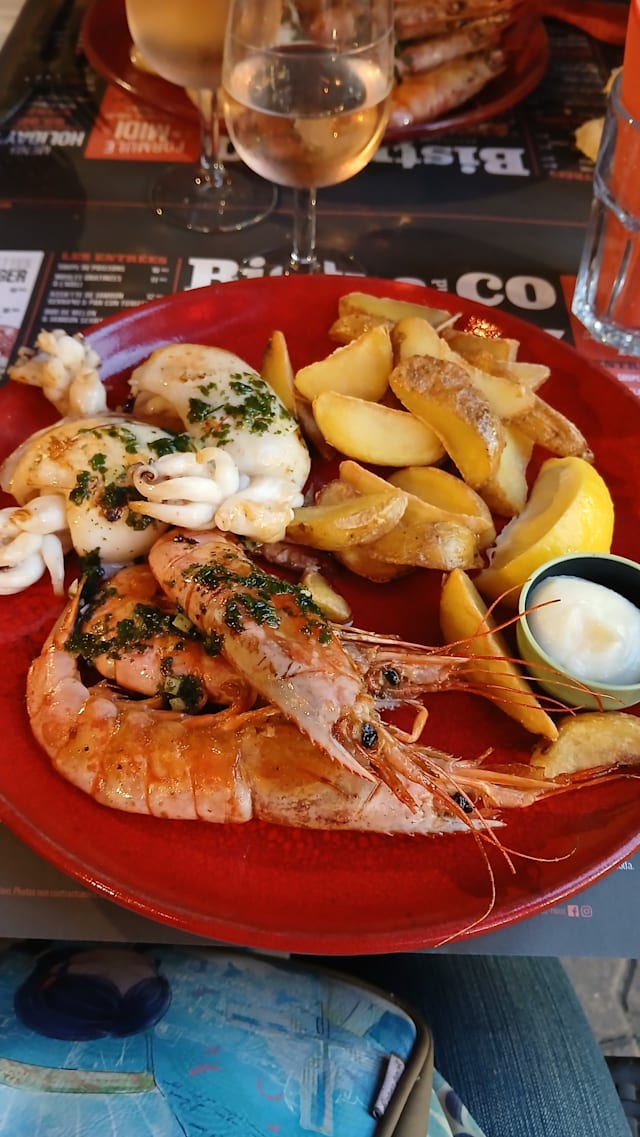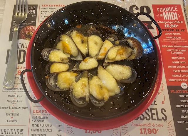 8.5/10Table was ready and waiting, staff were lovely. Chicken kebabs (brochettes) were good as was the salmon. Mussels were a little salty for my taste but still good. Calamari batter was too thick and cake like for us.