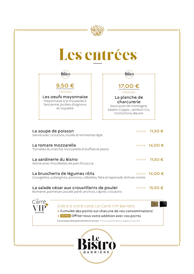 Simple expression de la bistronomie, le bistro Barrière vous propose une