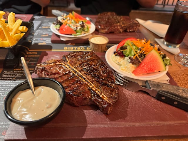 3/10i think from the get-go the host is not VERY welcoming, or just having a whateverly attitude, and kinda has a sarcastic way about laying out the seating for us, since we are last-minute-booked. The food is the biggest lay down, the ribs is dry the steak is mediocre at best and the salmon is like a 6 euro Albert Hijn fillet put it in a big plate and sold me 22 euro. Overall it is overpriced and very mediocre food. Not highly recommended.