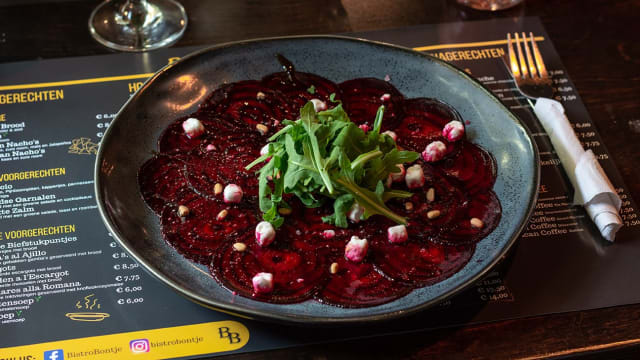 If you plan to eat at Bistro Bontje, the average price should be around €28. The average price is calculated based on appetizer/entrée or entrée/dessert, excluding drinks. Prices have been provided by the restaurant.