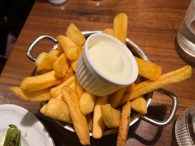 - Brioche, BBQ salsa, rucola. Alle hoofdgerechten worden geserveerd met verse friet