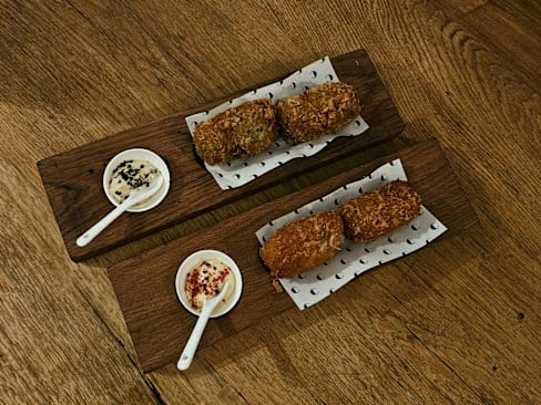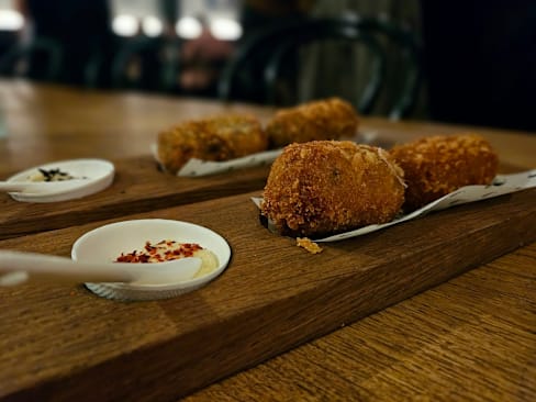 9/10lovely outside courtyard away from the street with fabulous, cooked to order food. croquettes especial yummy