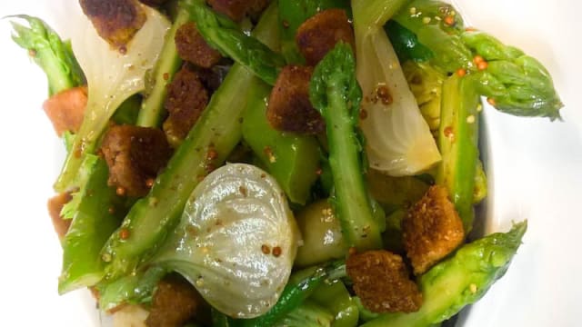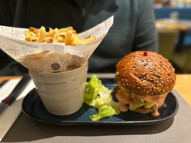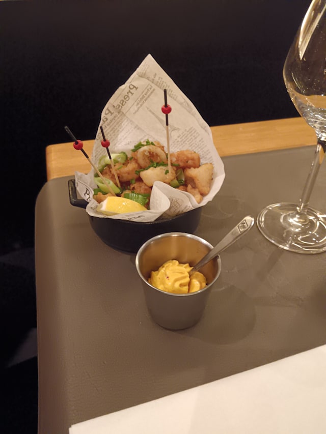 7.5/10We were here for a colleagues dinner. The food was quite good, nothing special, nothing bad. I ordered the vegetarian cassolette (20€) and it was a tiny little plate with only few mushrooms… I had to order another plate, it was less than an appetizer. Then we ordered the 2 x 8 pieces mix fried which consisted in fried shrimps, fried chicken and fried mozzarella sticks to share. But there were not mozzarella sticks at all and when we asked the waiter told us “yes but the chief put more shrimps and chicken which cost more than mozzarella” … we had a vegetarian among us. I mean..check the service