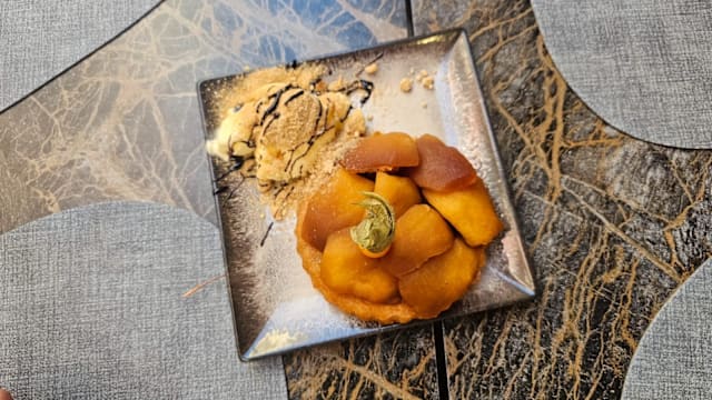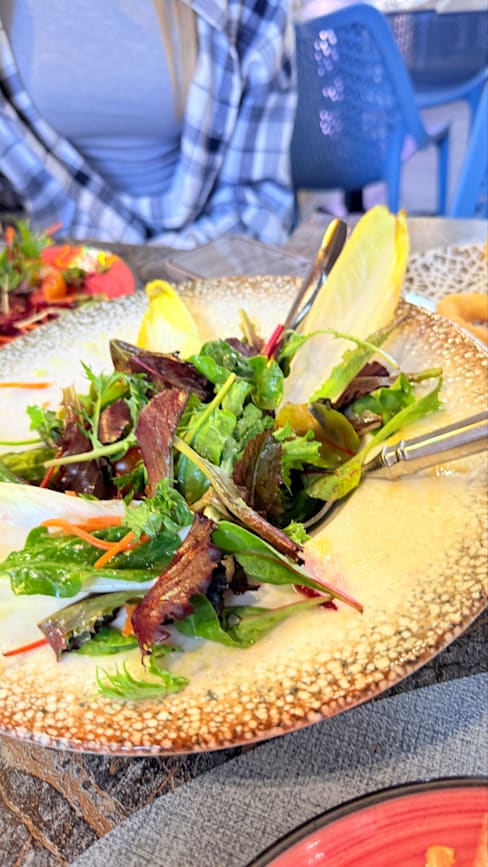 9/10When we came and Saw the pictures of the food . We thought it was the wrong place . It was to cold to sit outside and We Got a table inside in the Back . I was so Nice and a good style with velvet chairs and lamps made of baskets. The food and service was good and the Price good . We Will recommed this place