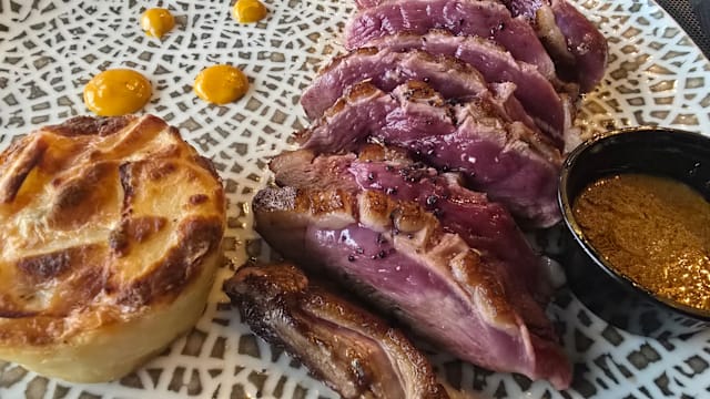 6/10The duck was okay, but the additional vegetables were burned. They did not charge the vegetables.