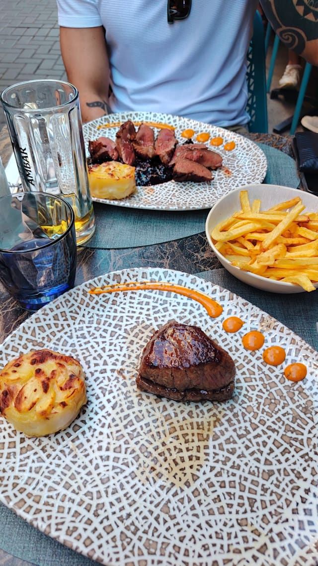 8/10The starters were a let down, pate had no flavor what so ever and was strangely served with ginger bread, which did not go together well at all. The two fillet steaks we ordered came out totally different in size and although we ordered both medium one came out a lot rather than the other so I wasn’t blown over with the meal but it wasn’t too bad. The knifes are awful and difficult to hold due to them being a really strange shape. They looked nice but not at all nice to use. The service was ok but as the restaurant got busy the service level dropped a bit.