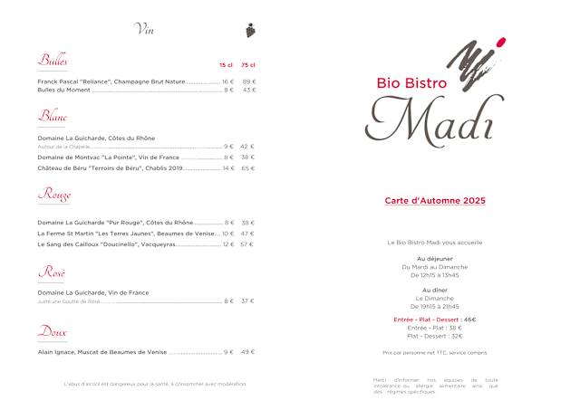 Yes, Bistro Madi - Château de Massillan has availability on TheFork currently. Do not hesitate, reserve your table on TheFork!