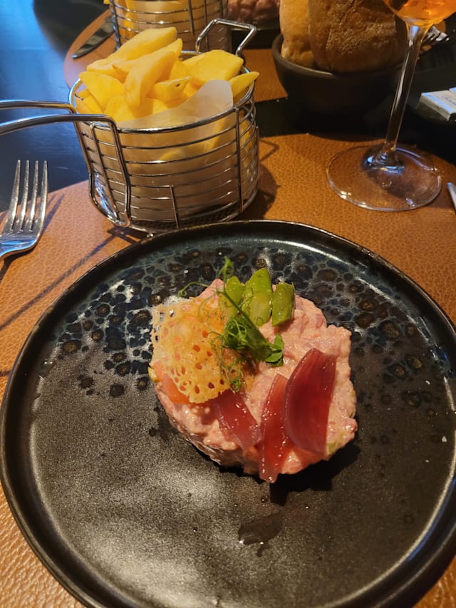 8/10On the plus side, the steak was great, the presentation is very nice and the setting of the restaurant is very good. On the minus, the service can be improved (the setting of the plate should be done in the kitchen, not on the table). A very good option in the area.