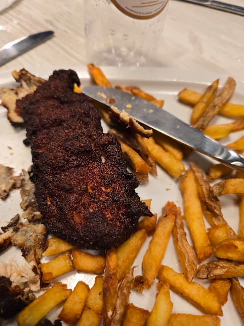 4.5/10I have reserved this restaurant 15 min before dinner. Found it on the fork and was marked as good for families. Getting in I was received my a gentleman that seemed not that very happy to welcome us. We were a group of 4 adults 1 kid and three toddlers. We asked about the portions for the kid's menus and learned that they were too big and therefore asked for 4 plates for 2 kids menus. Immediately, I realized the same gentleman was not happy. He brought me 4 small plates the ones you used as a tea cup plate. No worries. the problem was the food they served to the kids. French fries and fried chicken that were completely burned. When we complained the same person had that cheeky smile and said to us that it was like that and it was not burned. What an experience...to forget. Not even our food was good. A faux filet with a awkward sauce on top. If you can avoid it.