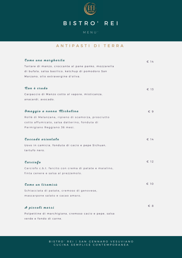 10/10My husband and I were lucky to visit Bistro Rei on our vacation to the Southern Italy. Chef Genaro asked us if we need a menu or do we need his suggestions, we said we would love to follow his suggestions and it is good that we did, we were not only not disappointed but very pleasantly surprised. Everything from star to finish, including the choice of wine was super delicious! At the end we were very honored to meet his team! The restaurant is slightly out of the popular route but please do yourself a favor and go there, you will not regret!