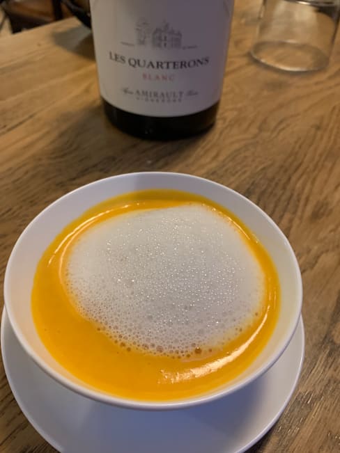 10/10+1The owner was very informative of what we were getting served for the night from the chef . Detailed in depth of the preparation and assured me the trout would have no bones which I dislike in US trouts from lakes . Everything was presented beautiful on our last nights dinner in Paris . It was an excellent prix fixed meal . Cauliflower soup , yellowtail, trout , duck with slight crispy skin , chocolate dessert .