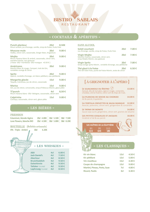 We were looking for somewhere to eat and saw that Le Bistro Sablais was listed on the Fork and was actually open. My better half had the oysters, I had the fois gras. Both were OK. I plumped for the magret with a fruits rouge sauce, thinking the sauce would come as an accompaniment, but in fact it had been splashed all over the magret. It was not the best sauce. A little disappointed. My better half can't remember what she had. Needless to say on a chilly Tuesday with most of the other Fork listed restaurants closed, the restaurant is a good option provided you are a bit selective. It's a largish restaurant, but was quite empty as it was a chilly Tuesday night in October. The waiter/waitress were very nice, very polite, very efficient.
