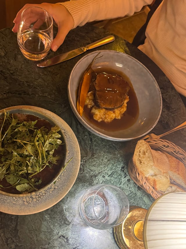 9/10the food was lovely, I had the fois gras, salmon and creme brulee, but the service was outstanding. the venue was full but our waiter never missed a beat with us or any tables around. kudos to them!