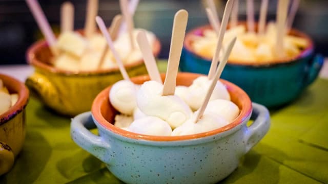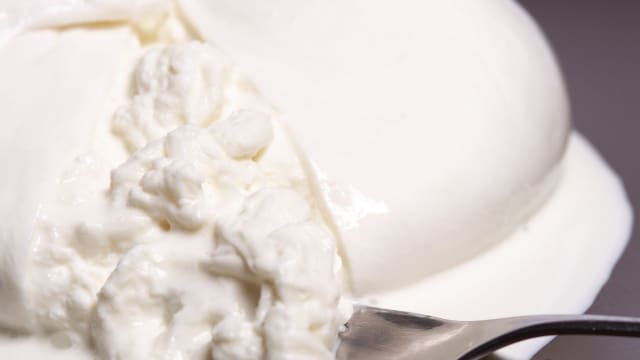Mozzarella di bufala di andria ripiena di ciliegine di bufala con panna accompagnata da salumi pugliesi misti.