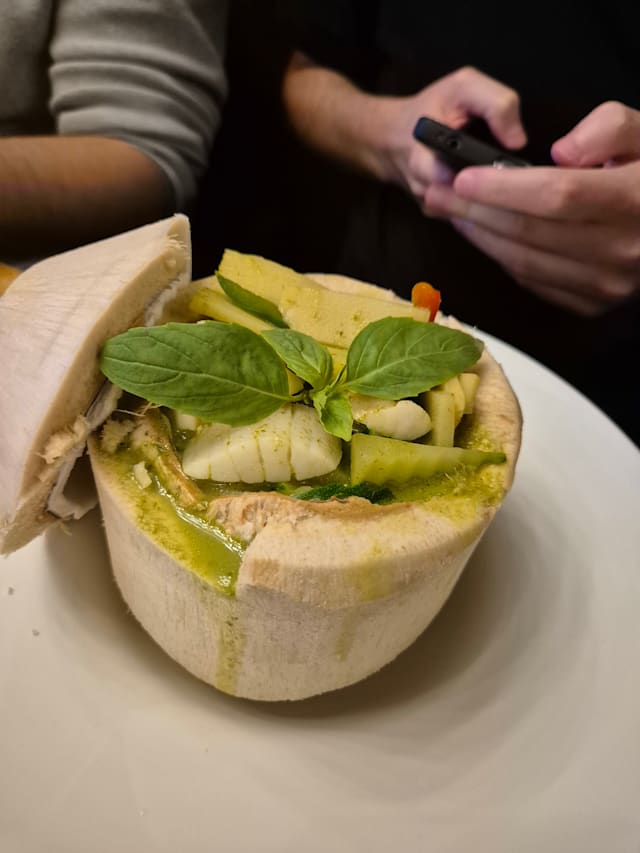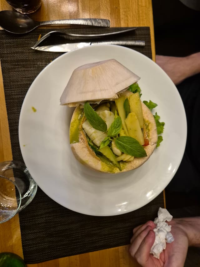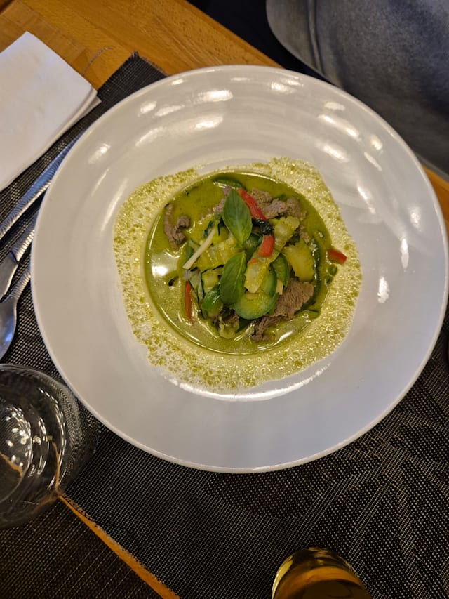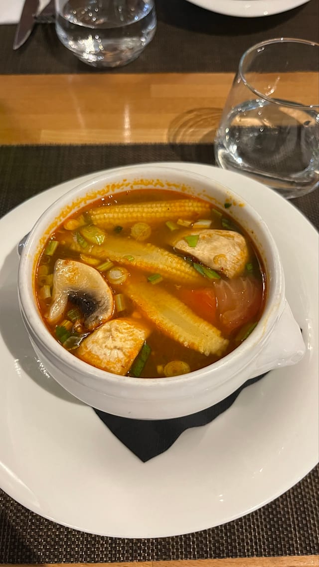 6/10The lemongrass soup was good. The red and green curry was not upto the mark on taste. It was a bit bland and too thin (watery). The presentation was good