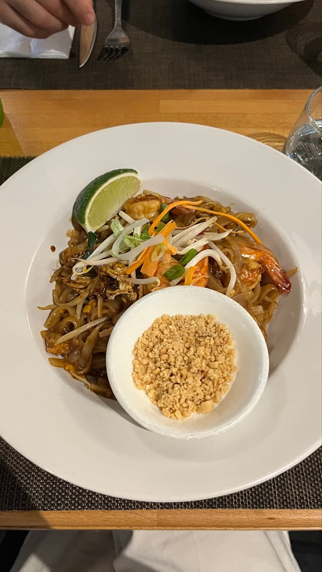 9.5/10Food was good, although my partner's pad thai was a bit oily, and service was friendly and attentive. Disappointed and surprised that the 20% Fork discount, advertised as 'on food' was not applied to our starters and dessert - just to the two main courses.