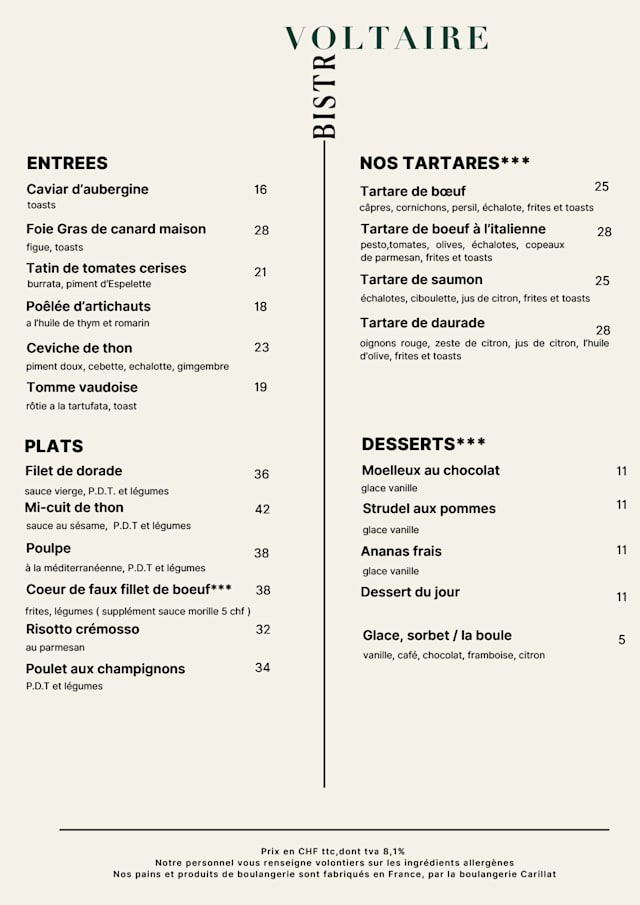 9/10The food was great. Even though they didn't have any kids menu our children could eat the beef and the fish. Of course at full price the dish is too much for a kid so our suggestion, if they want also as customer families with young kids, will be to propose some options for them. The service was OK, there is room for improvements in terms of efficiency and rapidity. Small note: I hope was an honest mistake but I realised when I was already at home that I was charged 10CHF more to what I have agreed to pay with tip.