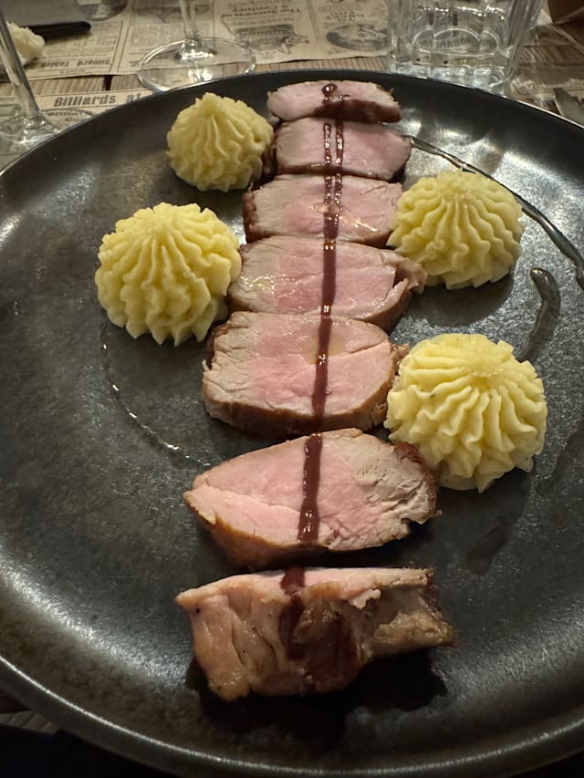 9/10Good vegetarian Spaghetti, the pork fillet was perfectly cooked. unlucky pick with the brownies dessert. Good service. lovely spot in town. I recommend.