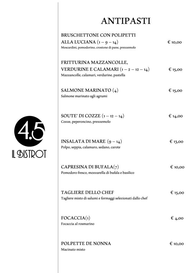 VI PRESENTIAMO IL BISTROT 4.5 L'autenticità delle ricette tipiche del territorio laziale si esprime grazie all'indiscussa qualità di ingredienti di qualità in piena linea con la filosofia eco-friendly che si è voluta attribuire al locale. Una scelta consapevole, ponderata, attenta, che se da un lato...