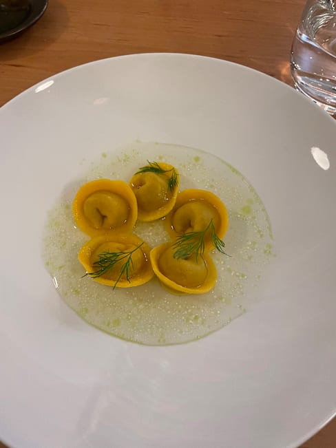 3.5/10+3This was a really disappointing meal, in a city where amazing food is around every corner. We had the 5 course tasting menu with carbonara as an extra starter. Textures were off throughout every dish - amuse bouche tart cases were too thick, too much gelatine, tortellini were dry and undercooked, pre-dessert apple dish was somehow mushy and underwhelming at the same time. Service was also unprofessional - dishes that we barely touched and no one asked. I gave feedback on the pasta and the waiter just said, ok. It’s very disappointing for a restaurant to not take any feedback and I believe this restaurant will get worst as a result. The decor and ambience were also awful - mint green and brown should only be paired in ice cream. It was probably so quiet in the restaurant because everyone hated the food so much. What a shame - as someone who loves visiting Italy and Japan I was expecting a lot from this meal. There was no innovation, no heartiness, no delicacy, no precision, but an air of pompousness worst than Michelin restaurants except this is in a common setting. We saw a couple came in, sat down, then walked out. Having approached the end of our meal, we watched them exit with envy.