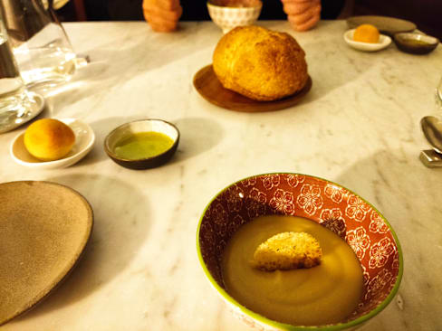 6/10Our experience at this restaurant was odd, the pasta course was sublime, a fantastic modern take on carbonara but my fish in broth was raw in the middle, kefir desert very nice, snacks were fun, bread lovely, lentils and aubergine underwhelming. I was asked if I had not liked the fish, I confirmed no it was not to my liking and after this service became petulant. We waited 30 minutes for our desert and were not offered coffee or a digestif, nor incidentally were we offered an aperitif on arrival. All in all not a Michelin 1star experience