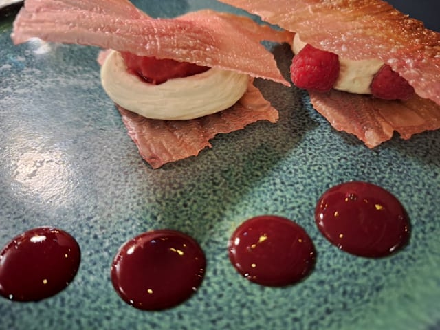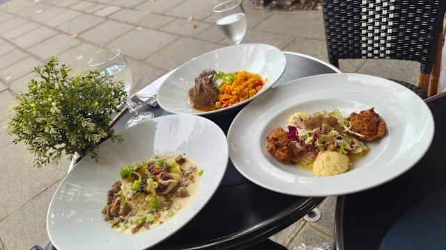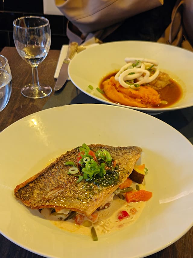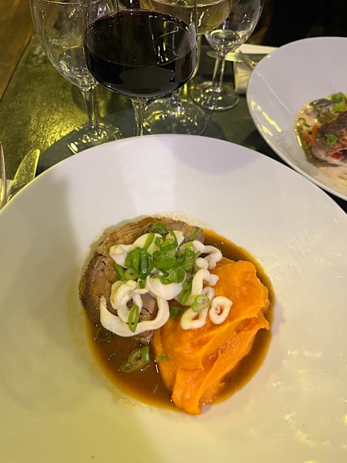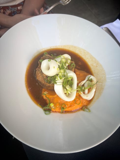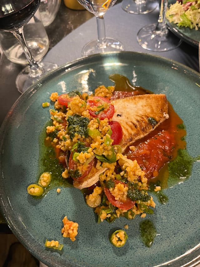 9/10The fish was perfectly cooked. Crunchy skin and tender flesh. The lamb souce was also well made. The presentation of the dishes was very nice. I wish the mushrooms risotto a little more creamy.