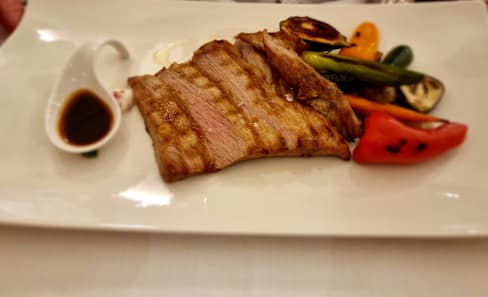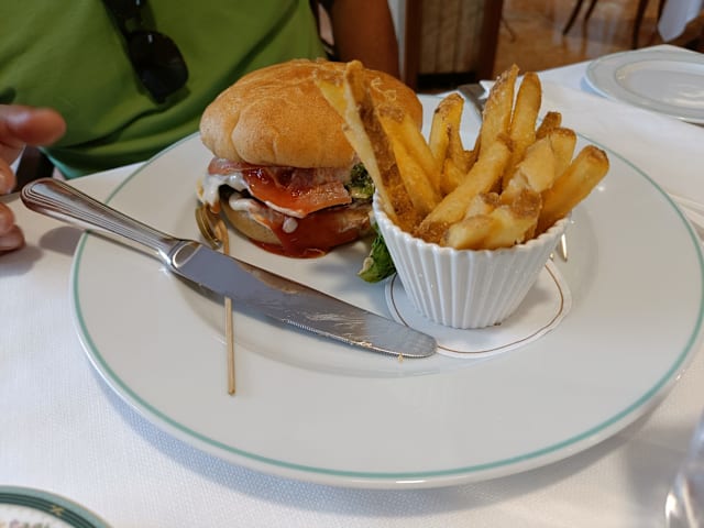 8/10We chose to eat on the large stunning terrace with panoramic views. But in full summer heat, there could have been more than 2 fans for the many tables there. We were seated also on the sunny side, despite there being tables on the shaded side. More fans would have turned a sticky meal into a much more pleasant evening. Unfortunately, we had a major confusion over the wording of the menu. In pretty much the whole world, rib eye means beef. But in this particular Italian menu, it apparently meant pork ! So please, add “maiale” to the description then! Now as we as we live here and understand most Italian, and always order from the Italian menu and speak competently in Italian, this was a big surprise. We had a discussion with the young waitress who insisted in Italy, this is normal to call pork a rib eye ! Never heard this before in many years of eating at fine restaurants…!