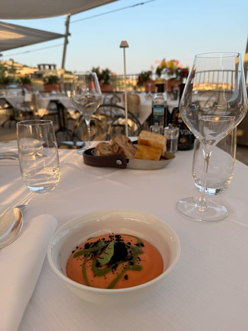 10/10The roof terrace is absolutely beautiful. The staff seemed very happy and worked well as a team. The food was divine and we loved everything about it except the music, which we thought was trying to make the ambience younger and more modern. However, in spite of this, we enjoyed our evening and we won’t forget how exceptional it was.