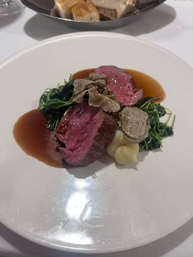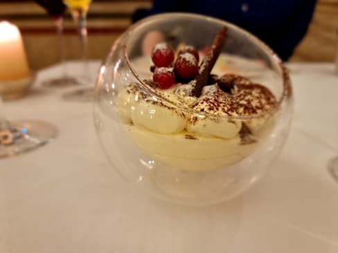 8.5/10+3Lovely historic venue with attractive dining room. No other diners when we ate making the atmosphere a little too quiet. Staff were friendly and attentive however. Food was excellent and the wine list extensive.