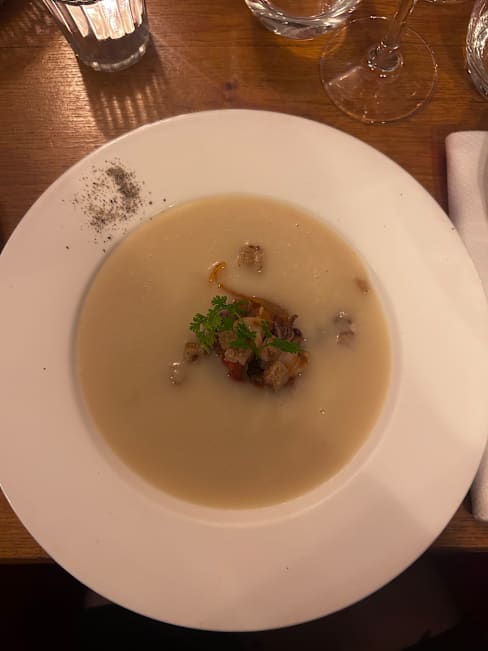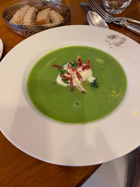 10/10The service was lovely with terrific accommodation for an American diner. The food was amazing. My husband had the foie gras and i had a broccoli soup with clams for starters and we both had sea bream with vegetables for the main. They were all terrific. Thankfully we ordered the chocolate soufflé for dessert. Sadly, for us, we only ordered one to share. Thinking about how to get back to get one of my own! I’d make it a destination restaurant.