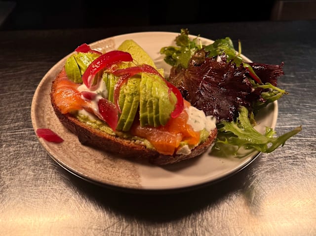 - Tartine au fromage frais, avocat et saumon fumé avec raifort