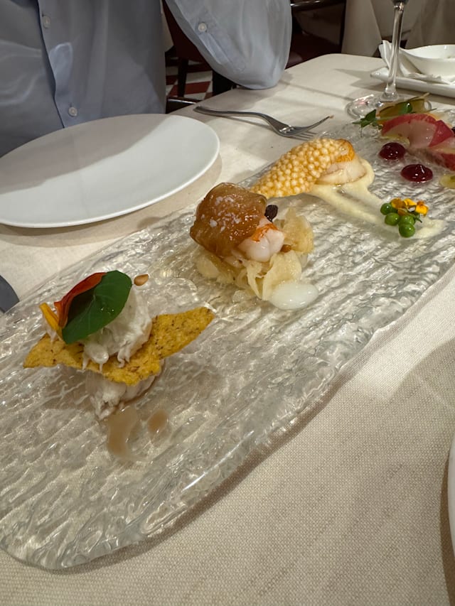 3.5/10First time at a Michelin restaurant and we did the 7 course tasting menu. I’m sorry but it was awful. Food was very bland. Every course involved fish… was hoping for some kind of meat course. The restaurant was super loud. Utterly disappointed and will never go to a Michelin restaurant on this app again. Way over priced for not even mediocre food.