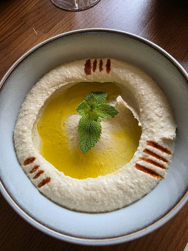 Purée savoureuse de pois chiches cuits, mélangés avec crème de sésame et du citron.