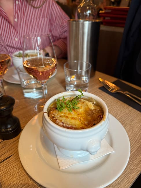 Hello, Thank you so much for your wonderful compliment! We’re thrilled to hear that our onion soup was the best you’ve ever had. We look forward to welcoming you again soon at Le Bistrot des Fables. Best regards, The Le Bistrot des Fables