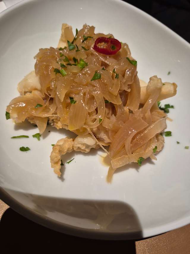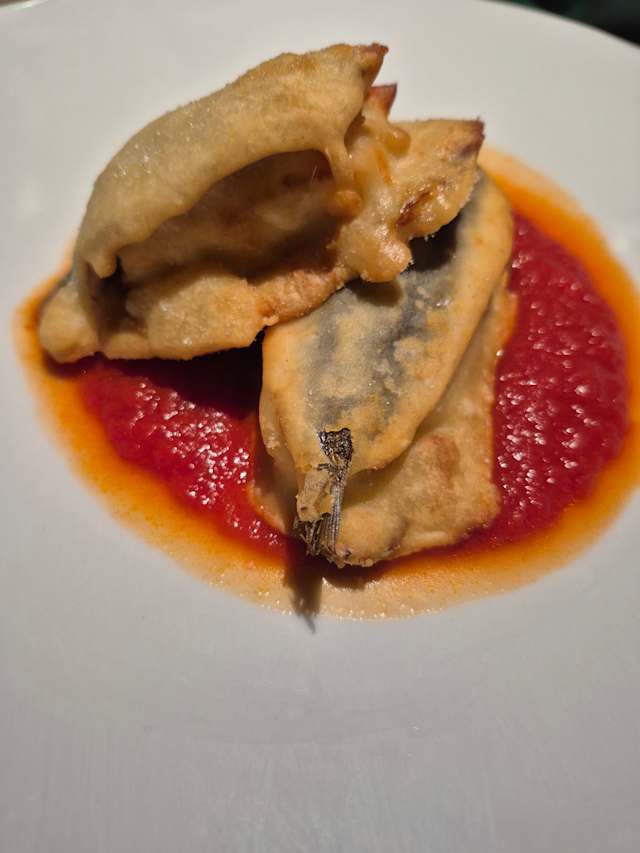 Seppie fritte con cipolla in agrodolce e peperoncino fresco