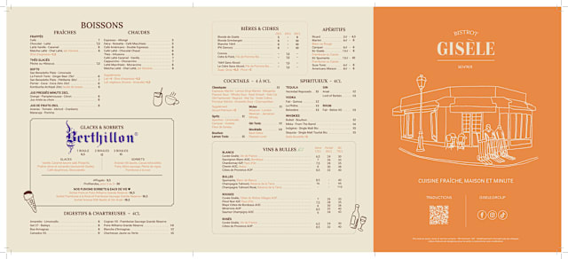 10/10Everything was perfect. Janet, our waitress, was charming and thoughtful. The food was excellent. We loved our evening at Bistrot Gisele!