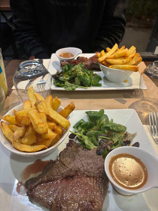 - STEAK HACHE, FRITES LINGUINES AU SOUMON OU A LA CARBONARA DESSERTS: FONDANT AU CHOCOLAT BOULE DE GLACE