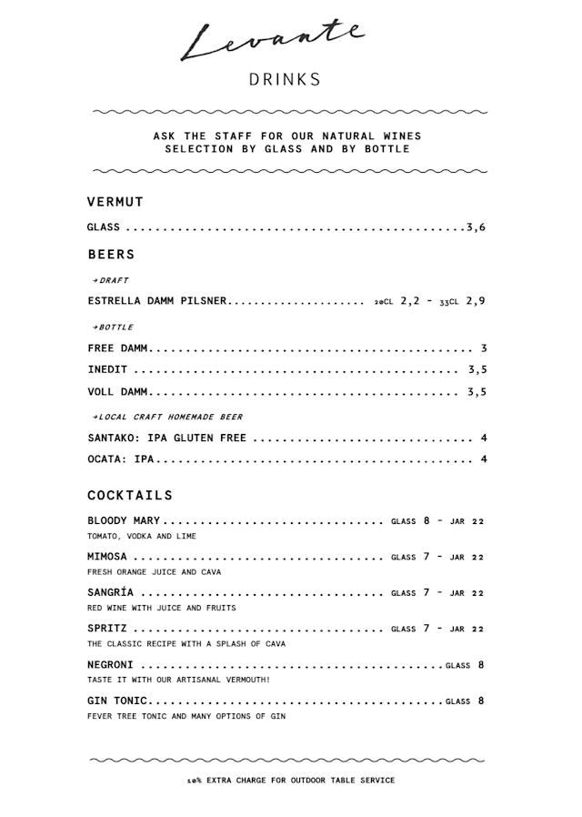 5/10We didn't have such a good experience at Bistrot Levante. It took 15 minutes before we could order drinks. The food took an unusually long time and we didn't get the tapas dishes at the same time. There were not many guests in the restaurant, so did not understand why it took so long. We waited 45 minutes before we got the last dish, which was a very simple salad that we had to ask for twice. They gave us regular bread when we asked for gluten-free, as we had to double check if it was actually gluten-free. When we went to pay, we told them about our experience and we got a total discount of 3 euros (gluten-free bread). We will definitely NOT be returning here.
