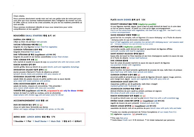 10/10Authentic korean restaurant in the city center, close to Louvre's Museum. Excellent food and super affordable prices (considering where it is located)