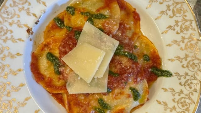 Raviole au bœuf confit gratinés à la sauce tomate