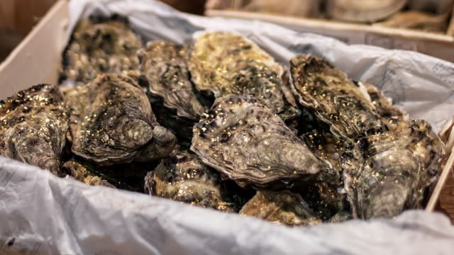 I cotti: 3 gamberi « bouquet », 6 bulots // i crudi: la nostra selezione di 3 ostriche, 2 mandorle di mare, 2 tartufi di mare o fasolari // burro, limone, salsa “mignonette” e pane