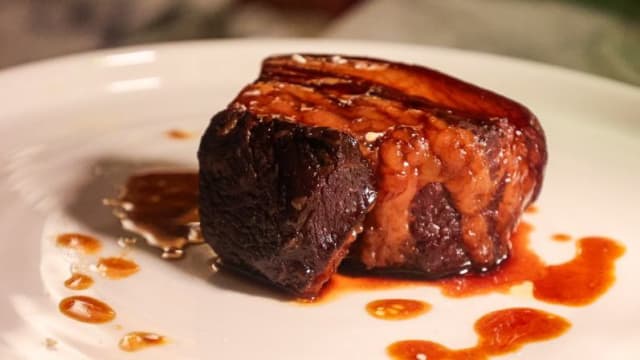 Filetto di manzo con riduzione di vino rosso alla vaniglia e flan di sedano rapa al tartufo