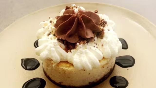 - Cocoa nibs, coffee ice cream, and tuile.