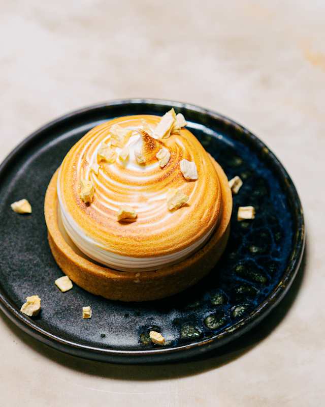 - Pisco, lime, cordiale mango, e curry, spuma al mango