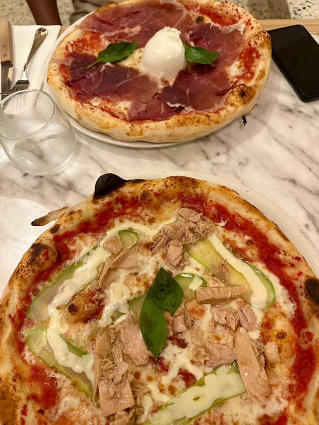 10/10Very kind personnel, the pizzas were good and we really appreciated that they offered us to sit in the air conditioned room (there were more than 30 degrees on the street so it was a great relief).